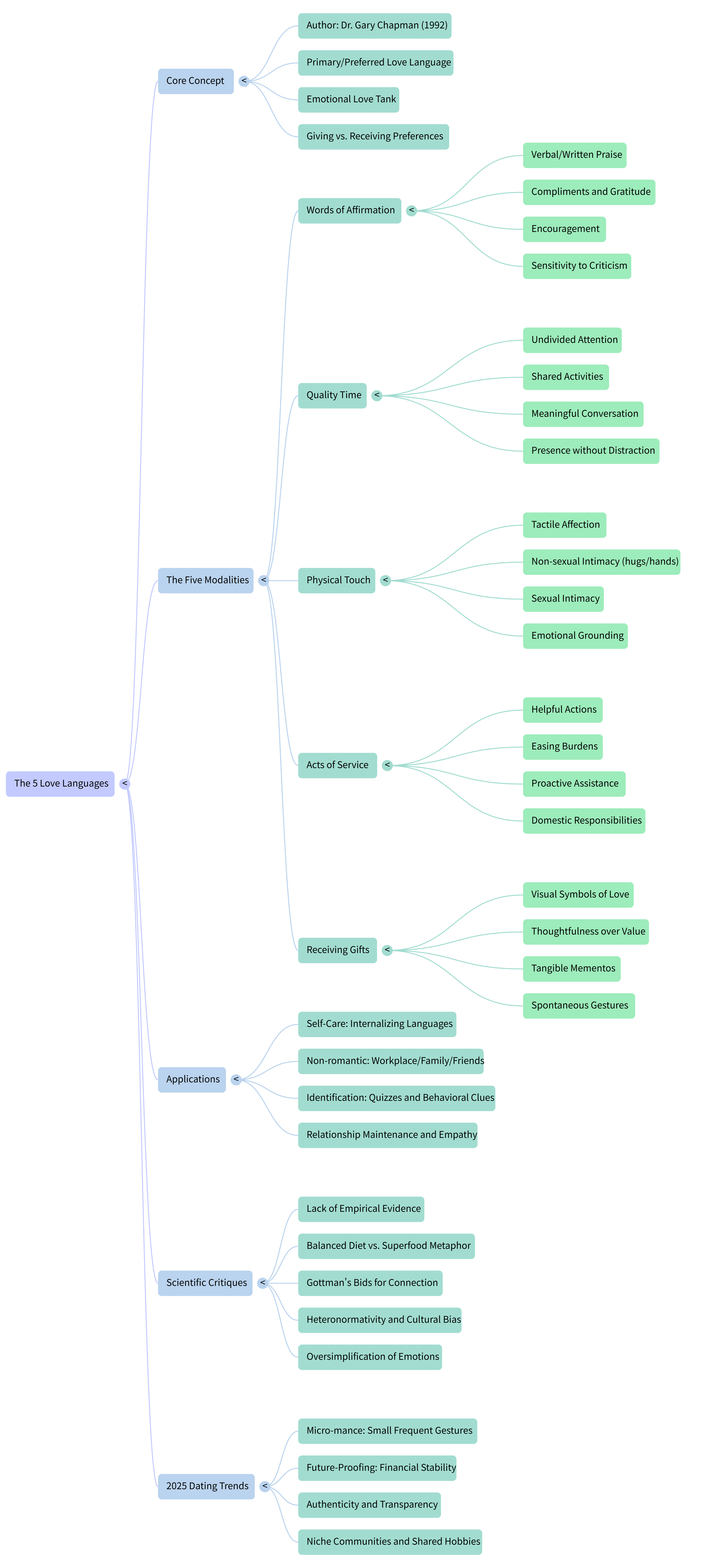 - The "Superfood" Approach: Operates on the assumption that identifying a single primary language (e.g., Acts of Service) is the silver bullet for relationship satisfaction, often leading to the undervaluation of other essential loving behaviors.